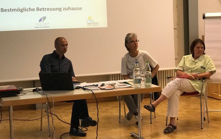 Am Dienstag haben am Spital Affoltern am Albis Vertreterinnen der lokalen Spitex, der Palliativstation und ein Vertreter von Onko Plus aus ihrer Praxis berichtet. Sie zeigten auf, wie rund um Palliativpatientinnen und -patienten ein optimales Versorgungsnetzwerk gewoben werden kann. Dieses reisst auch dann nicht, wenn die Behandlung von ambulant zu stationär wechselt – und wieder zurück.